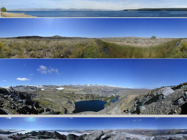 The Museum of National History at the Buffalo Bill Historical Society is creating an interactive ecology exhibit that requires 360 degree panoramas of 4 different ecological zones near Yellowstone National Park. I was asked to take 20 panoramas and associated single images to help describe and supplement the panoramas (hotspots). There was no programming work. I used a Nikon digital camera, a Kaiden panorama head, QTVR software and Photoshop to complete the project. The images varied from about 7500 pixels to 12,000 pixels wide and 768 pixels high. Some examples of the (reduced considerably) panoramas are shown below.